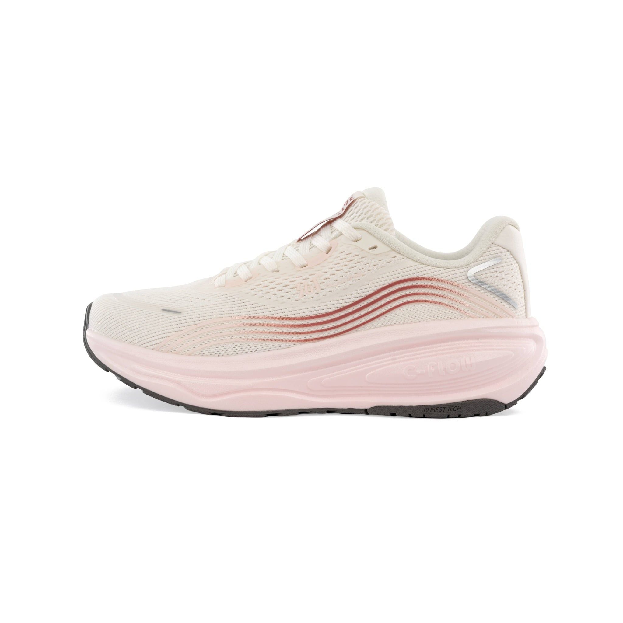 Đế giữa C-Flow được thiết kế để tối ưu khả năng đàn hồi, giúp tăng cường độ êm ái và hỗ trợ hấp thụ lực hiệu quả, từ đó hạn chế tác động lên khớp gối trong suốt quá trình vận động.