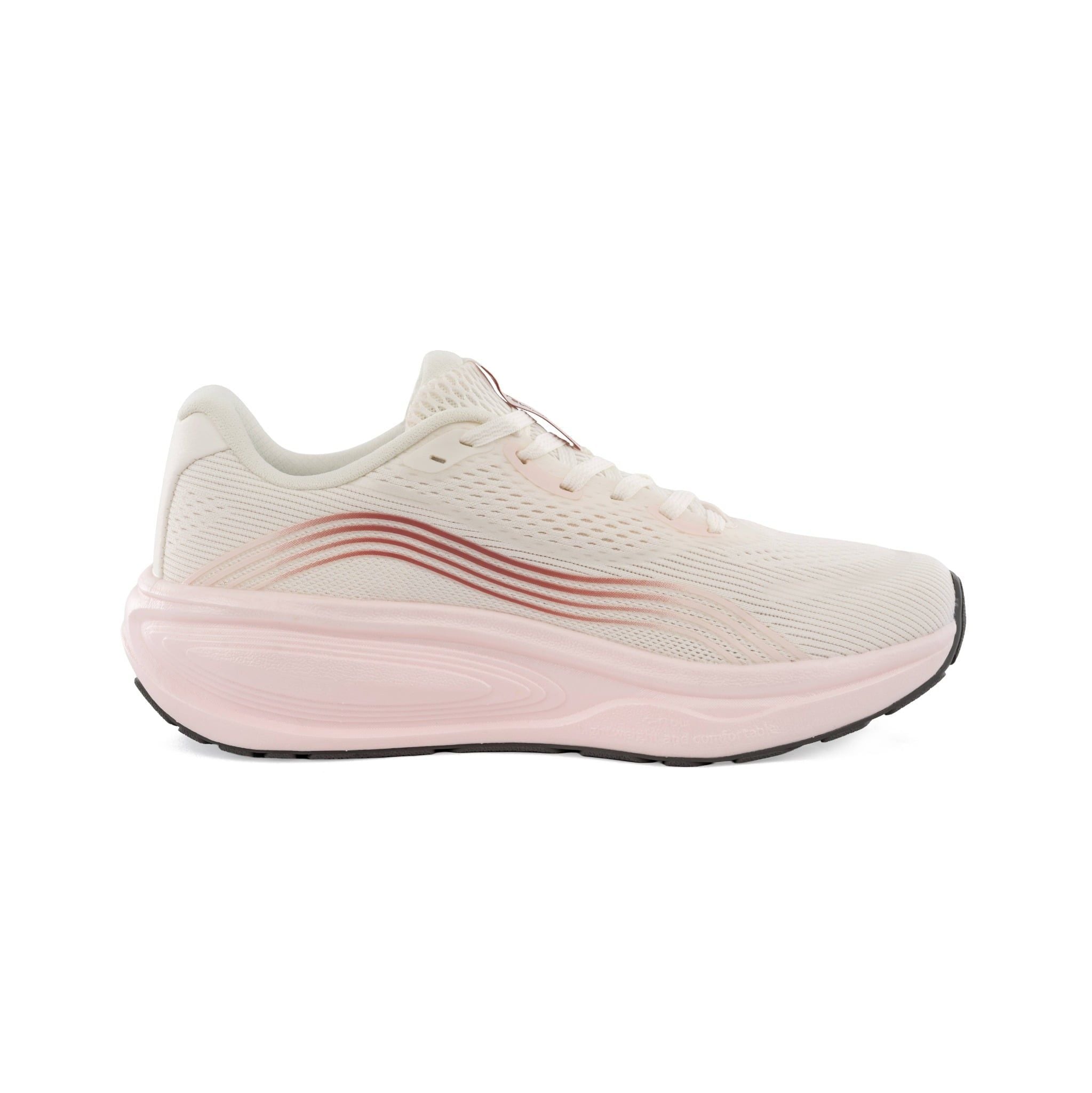 Trọng lượng nhẹ, hỗ trợ chuyển động tự nhiên: Giày được thiết kế với trọng lượng nhẹ, mang lại sự linh hoạt tối đa trong từng chuyển động, hỗ trợ người dùng tăng tốc dễ dàng mà không cảm thấy nặng nề hay mất sức. Các công nghệ cấu trúc đế và thân giày được tối ưu để hỗ trợ chuyển động tự nhiên của bàn chân, giúp duy trì độ ổn định và tư thế chạy đúng, từ đó giảm nguy cơ chấn thương và tăng hiệu quả luyện tập.